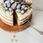 This simple cake is naturally flavored with fresh lemon juice and zest then frosted with lemon buttercream, and topped with luscious blackberries dusted with powdered sugar. You can make this cake two layers, or three. If you make a double layer you’ll need to use two 9 inch non stick cake pans, to make it triple layer you’ll need three 8″ non stick cake tins.